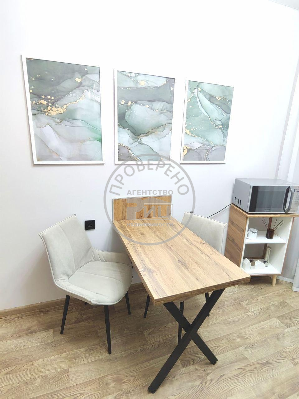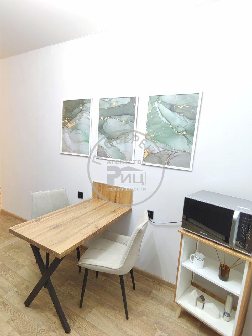 Продается однокомнатная квартира. В квартире выполнен капитальный ремонт. Окна пластик, пол стяжка. Стены оклеены обои, потолки натяжные. Санузел раздельный. балкон застеклен пластик, утеплен - обшит. Есть кладовка, сделана под гардероб, с зоной хранения вещей. Двухспальная кровать (новый матрас в пакете) зонирована декоративной перегородкой из бруса, диван раскладывается на два полноценных спальных места. При продаже остаётся вся бытовая техника (холодильник, варочная панель на 4 комфорки, вытяжка, микроволновка, телевизор, стиральная машинка), кухонный гарнитур. В шаговой доступности (3 мин) расположены следующие объекты инфраструктуры:Детская поликлиника №5; Детский сад "Филипок"; Детский сад "Искорка"; Детский сад "Крепыш"; Школа №27; Прогимназия; Автобусная остановка Камертон (возможность добраться в любую часть города);